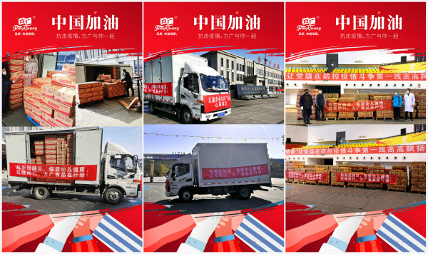 2020年春節(jié),“新型冠狀病毒肺炎”肆虐,一場(chǎng)突如其來的疫情牽動(dòng)人心。作為一個(gè)傳遞愛心與溫暖和有社會(huì)責(zé)任感的品牌,方廣一直以來密切關(guān)注疫情發(fā)展,希冀為這場(chǎng)防“疫”戰(zhàn)貢獻(xiàn)力量。疫情爆發(fā)后,獲悉湖北等疫情嚴(yán)重地區(qū)物資缺乏,嬰幼兒產(chǎn)品告急,經(jīng)公司各級(jí)領(lǐng)導(dǎo)積極組織和各部門緊急協(xié)調(diào)配合,方廣食品向中國兒童少年基金會(huì)捐贈(zèng)價(jià)值近22萬元的嬰幼兒輔食及零食產(chǎn)品,用于“防新型冠狀肺炎,保障嬰幼兒營養(yǎng)”支援湖北省公益項(xiàng)目。2020年2月16日一大早,愛心物資車滿載方廣米粉、面條、餅干、小饅頭、磨牙棒、米餅、小蛋卷等共計(jì)7個(gè)品類、430箱產(chǎn)品從揚(yáng)州生產(chǎn)中心出發(fā),星夜奔馳駛向疫情嚴(yán)重的湖北孝感。2月17日早,捐贈(zèng)物資已順利抵達(dá)并于指定接收點(diǎn)交接完畢,由孝感市慈善總會(huì)接管入庫,將發(fā)放給留觀點(diǎn)及困難家庭孩子。方廣始終秉持著對(duì)疫區(qū)千萬孩子們的深切關(guān)懷,緩解疫情嚴(yán)重地區(qū)特殊家庭的物質(zhì)需求,為孩子們的營養(yǎng)健康保駕護(hù)航,助力疫區(qū)家庭共度難關(guān)。